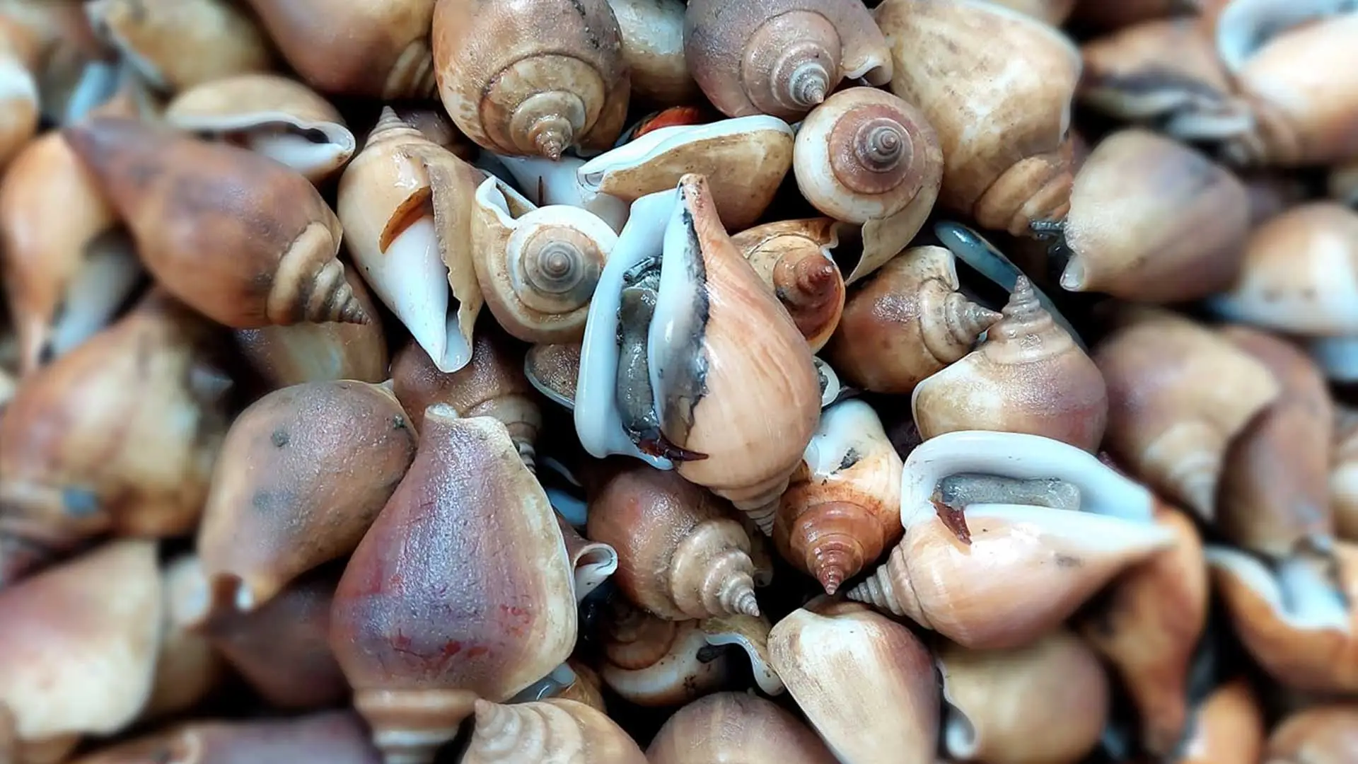 “หอยชักตีน” มีรูปร่างคล้ายผลสาลี่เปลือกบางเรียบและมีสีขาว เหตุที่เรียกว่า “สังข์” ก็เพราะมีลักษณะภายนอกคล้ายหอยสังข์ที่ใช้รดน้ำในงานมงคลสมรส แต่หอยชักตีนหรือสังข์มีขนาดเล็กกว่า หอยชักตีนกินสาหร่ายและอินทรีย์สารตามพื้นทะเล มีความสูงระหว่าง 3.5-5.5 ซ.ม. เป็นสัตว์น้ำที่มีความสำคัญควบคู่กับจังหวัดกระบี่