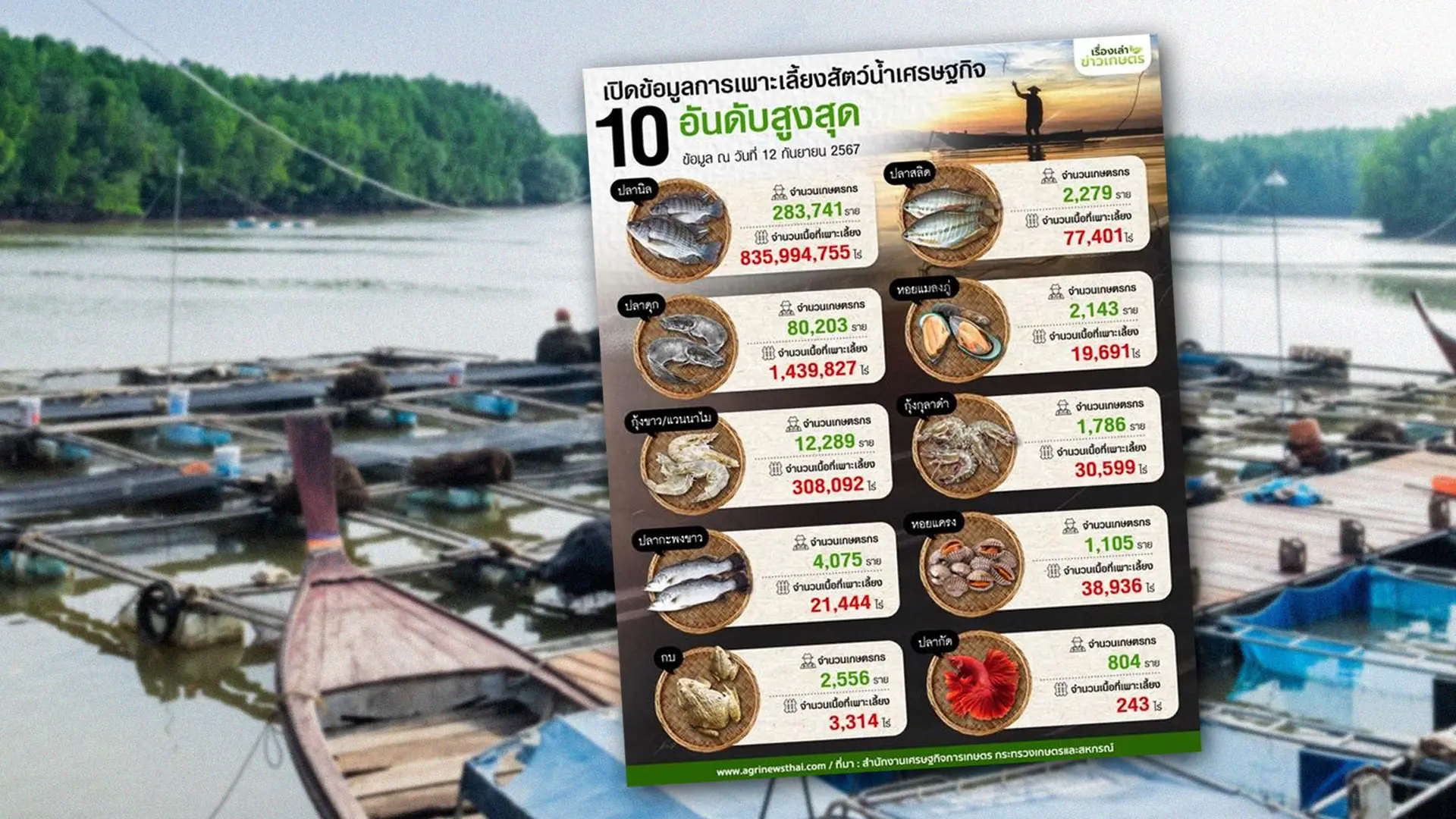 จำนวนเนื้อที่เพาะเลี้ยง 835,994,755 ไร่