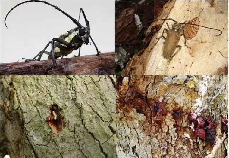 “ด้วงหนวดยาว” การระบาดของแมลงศัตรูชนิดนี้ เกิดขึ้นในลักษณะค่อย ๆ สะสมความรุนแรงแบบภัยมืด โดยชาวสวนไม่ทราบว่ามีการระบาดของศัตรูพืช เนื่องจากเป็นแมลงกลางคืนพฤติกรรมต่าง ๆ เกิดขึ้นในช่วงกลางคืนและส่วนใหญ่พบทำลาย “ทุเรียนพันธุ์หมอนทอง” ตัวเต็มวัย