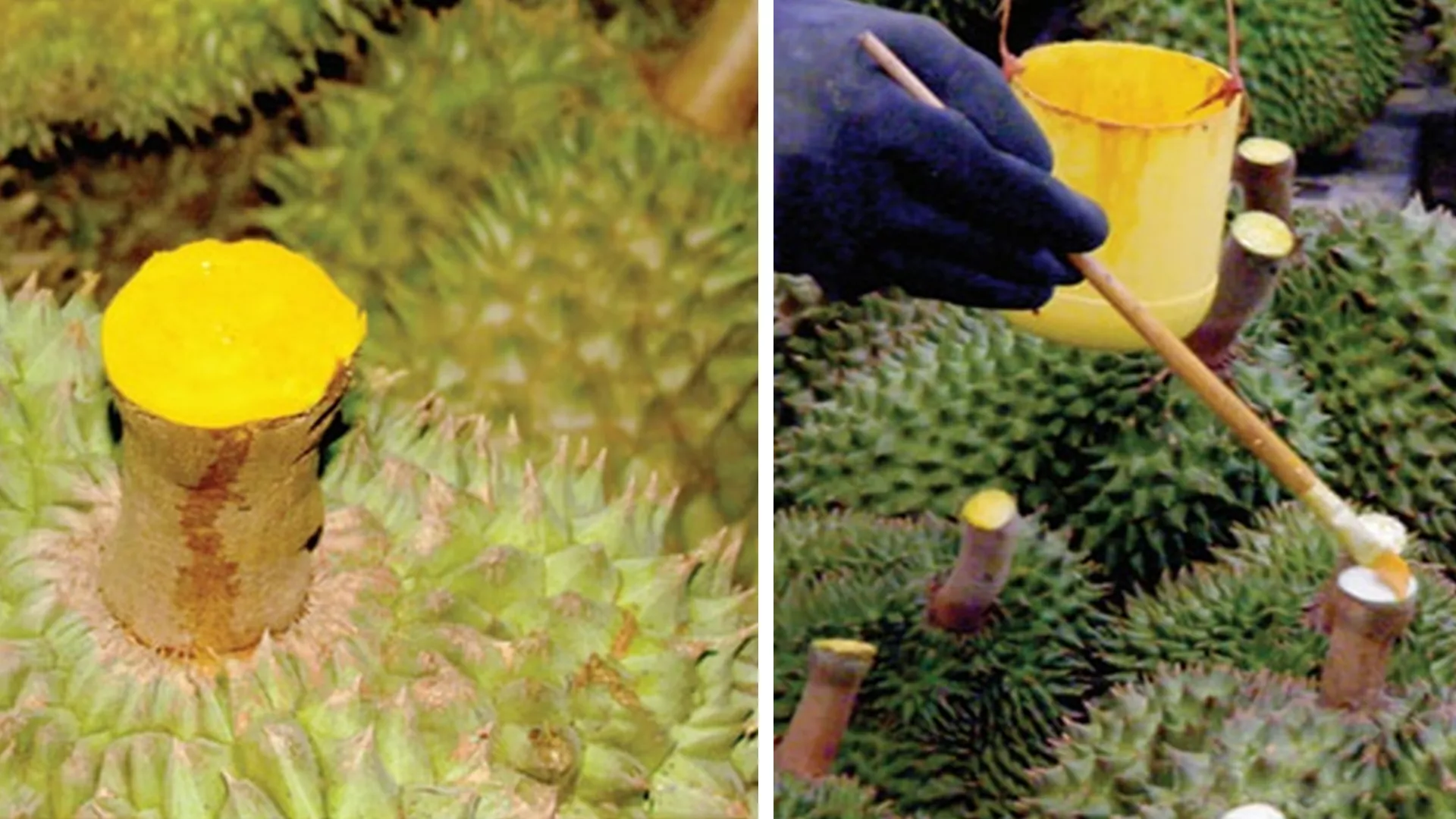 - ไม่มีชาวสวนทุเรียนคนไหนที่ใช้ยาฆ่าหญ้ามาป้ายขั้วทุเรียนแน่นอน
