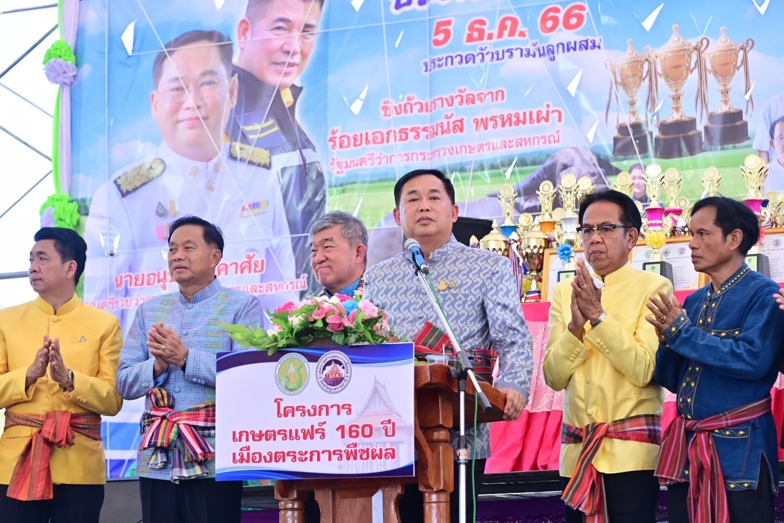 วันที่ 6 ธ.ค.66 นายอนุชา นาคาศัย รัฐมนตรีช่วยว่าการกระทรวงเกษตรและสหกรณ์ ได้รับมอบหมายจาก ร้อยเอก ธรรมนัส พรหมเผ่า รัฐมนตรีว่าการกระทรวงเกษตรและสหกรณ์ เป็นประธานพิธีเปิดงานสีสันตำนาน 160 ปี เที่ยวเมืองตระการพืชผล จังหวัดอุบลราชธานี ประจำปี 2566 ระหว่างวันที่ 3 – 7 ธ.ค. 66 และเปิดงานเกษตรแฟร์ 160 ปี ตระการพืชผล ระหว่างวันที่ 5 – 6 ธ.ค. 66 พร้อมมอบรางวัลประกวดวัว-ควายสวยงาม ณ สวนสาธารณะหนองขุหลุ อำเภอตระการพืชผล จังหวัดอุบลราชธานี
