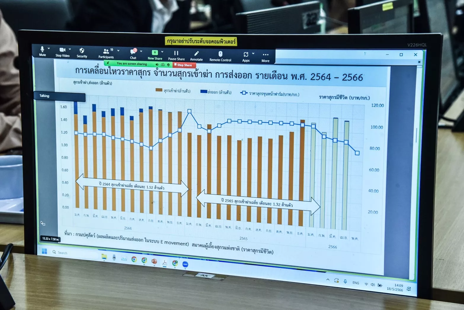 ทั้งนี้ในที่ประชุมมีการรายงานสรุปข้อมูลจำนวนสุกรและเกษตรกรผู้เลี้ยงสุกร สถานการณ์โรคที่สำคัญในสุกร ศูนย์ผลิตน้ำเชื้อสุกรมาตรฐาน มาตรฐานฟาร์มภาคบังคับ และข้อมูลฟาร์มมาตรฐานสุกร และมีการรายงานสถานการณ์การผลิต ต้นทุนการผลิต การตลาดในสุกร เปรียบเทียบ ปี 2564 -2566 นอกจากนี้ได้พิจารณาเกี่ยวกับข้อมูลด้านสุกรที่สำคัญ ระบบหรือขั้นตอนการรายงานข้อมูลด้านสุกร