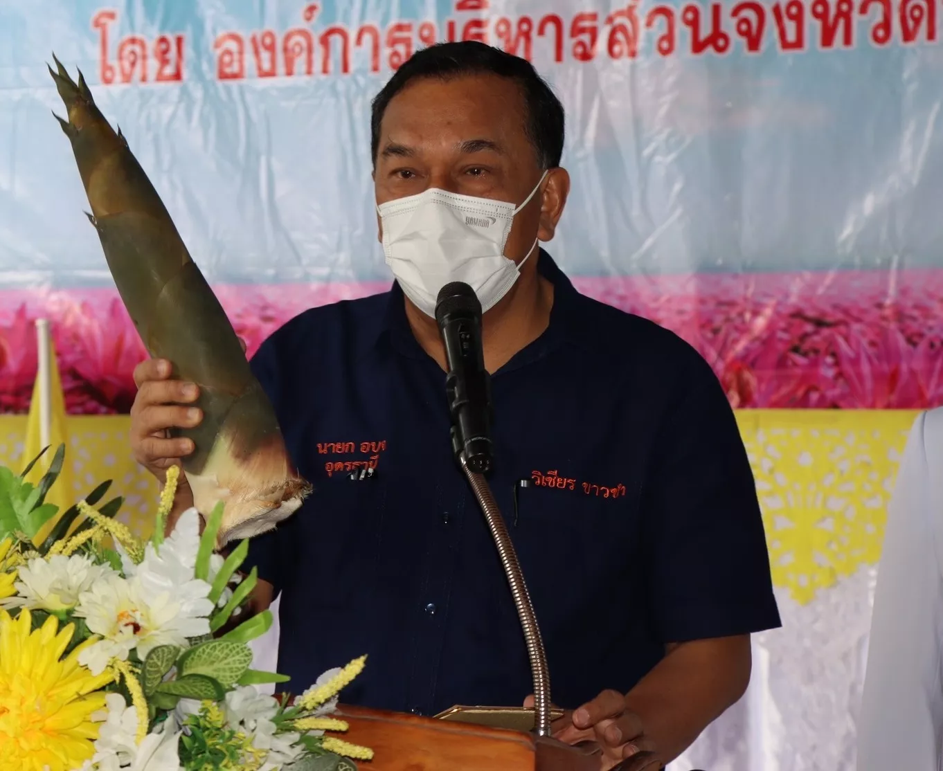 นายวิเชียร ขาวขำ นายกองค์การบริหารส่วนจังหวัด(อบจ.)อุดรธานี เปิดเผย ได้ร่วมกับองค์กรปกครองส่วนท้องถิ่น(อปท.)ทั้ง 186 แห่ง ใน 20 อำเภอของจังหวัด จัดทำโครงการพัฒนาและส่งเสริมอาชีพของประชาชนในจังหวัดอุดรธานี ด้วยการ ”ปลูกไผ่ มีไม้ได้อาหาร “ โดยส่งเสริมการปลูกไผ่กิมซุงหรือไผ่หวานหรือไผ่ตง ซึ่งเป็นต้นไผ่พันธุ์โตเร็ว ให้ผลผลิตสูง