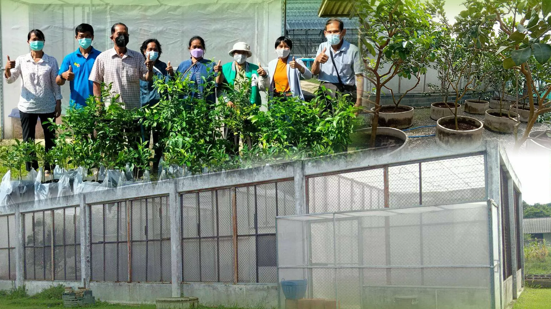 สวพ 5. ได้จัดสร้างโรงเรือนปลูกพืช ที่สามารถป้องกันเพลี้ยไก่แจ้ส้มที่เป็นพาหะนำโรคกรีนนิ่ง และใช้เทคโนโลยีการผลิตพันธุ์ส้มโอปลอดโรคกรีนนิ่ง จาก สอพ. มาใช้เป็นแหล่งตาพันธุ์ในการขยายต้นพันธุ์ปลอดโรค โดยการเตรียมต้นตอจากการเพาะเมล็ดพันธุ์ส้มแรงเพอร์ไลม์ และ สวิงเกิล ในโรงเรือนกันแมลง เมื่อต้นกล้าเจริญเติบโตขนาดที่เหมาะสมทำการติดตาโดยใช้ตาพันธุ์จากต้นแม่พันธุ์ที่ปลูกไว้ ดูแลรักษาตาพันธุ์ ดูแลรักษาจนตาส้มโอพัฒนาและได้ต้นพันธุ์ที่สมบูรณ์แข็งแรง จึงสุ่มใบส้มโอไปตราจหาเชื้อโรคกรีนนิ่ง หากปลอดเชื้อจะมอบให้เกษตรกรนำไปปลูกในแปลง สามารถผลิตพันธุ์ส้มโอที่ปลอดโรคกรีนนิ่งได้ 565 ต้น