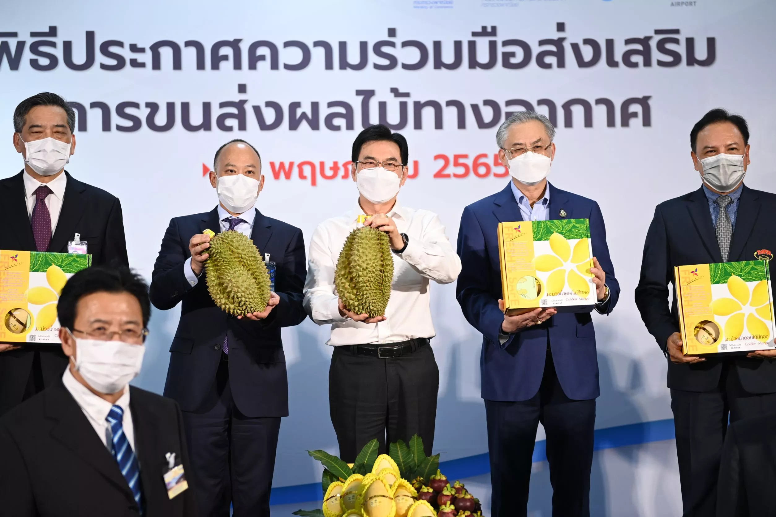 จากการทำงานร่วมกันวันนี้ประกอบด้วยกรมส่งเสริมการค้าระหว่างประเทศ การท่าอากาศยานแห่งประเทศไทย การบินไทยและสมาคมตัวแทนขนส่งทางอากาศไทยและสมาพันธ์ผู้ให้บริการโลจิสติกส์ไทย 5 ฝ่ายจับมือกันเป้าปีนี้ 6.5% คือ 30,600 ตัน จะเพิ่มจากความร่วมมือวันนี้อีก 5,000 ตัน เป็น 35,600 ตัน จะมีส่วนช่วยทำให้ “ตลาดผลไม้สดไทย” ไปจีนเพิ่มปริมาณขึ้น ช่วยให้เกษตรกรมีความหวังในการระบายผลไม้คุณภาพมาตรฐานไปสู่ตลาดจีนได้คล่องตัวขึ้น ผ่านเส้นทางทางอากาศ ขอขอบคุณในความร่วมมือร่วมกัน