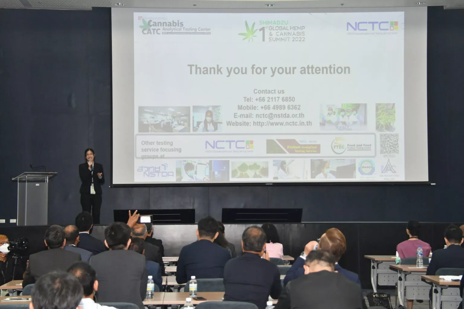 ณ อุทยานวิทยาศาสตร์ประเทศไทย จ.ปทุมธานี : สำนักงานพัฒนาวิทยาศาสตร์และเทคโนโลยีแห่งชาติ (สวทช.) โดยศูนย์บริการวิเคราะห์ทดสอบ (NCTC) ร่วมกับ Shimadzu Asia Pacific และบริษัท พาราไซแอนติฟิค จำกัด จัดงาน Shimadzu 1st Global Hemp & Cannabis Summit 2022 เพื่อเปิดพื้นที่ในการรับฟังความต้องการของผู้ประกอบการและผู้ที่ต้องการนำกัญชา กัญชง ไปใช้ประโยชน์เพื่อพัฒนาอุตสาหกรรมในประเทศ โดยมีนายสุชาติ ไตรแสงรุจิระ ที่ปรึกษารัฐมนตรีว่าการกระทรวงอุตสาหกรรม เป็นประธานเปิดงาน พร้อมด้วย Mr. Tetsuya Tanigaki กรรมการผู้จัดการ Shimadzu (Asia Pacific) ประเทศสิงคโปร์ คุณพูศักดิ์ หิรัณยตระกูล กรรมการผู้จัดการ บริษัท พาราไซแอนติฟิค จำกัด ผศ.สุชาดา ไชยสวัสดิ์ ผู้อำนวยการศูนย์วิเคราะห์ทดสอบยาชีววัตถุ (BPCL) มหาวิทยาเทคโนโลยีพระจอมเกล้าธนบุรี และ ดร.ณฏฐพล วุฒิพันธุ์ ผู้อำนวยการศูนย์บริการวิเคราะห์ทดสอบ สวทช. เข้าร่วมงาน