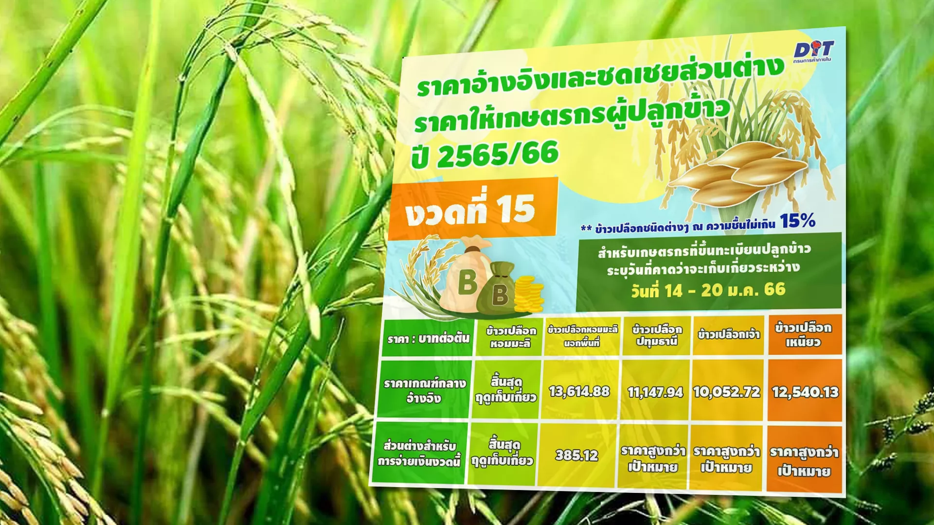 เรื่อง การกำหนดราคาเกณฑ์กลางอ้างอิงและการชดเชยส่วนต่างราคาตามโครงการประกันรายได้เกษตรกรผู้ปลูกข้าว ปี ๒๕๖๕/๖๖ (งวดที่ ๑๕)