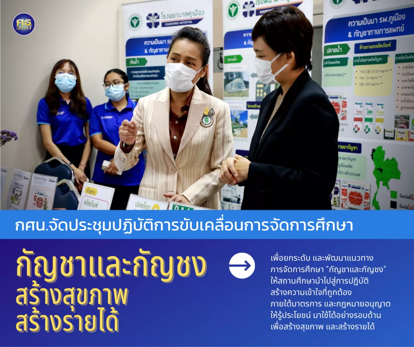 นางกนกวรรณ วิลาวัลย์ รมช.ศึกษาธิการ เปิดการประชุมเชิงปฏิบัติการขับเคลื่อนการจัดการศึกษา “กัญชาและกัญชงสร้างสุขภาพสร้างรายได้” ณ หอประชุมบุณยเกตุ อาคารหอประชุมคุรุสภา โดยมีผู้ทรงคุณวุฒิที่มีความรู้ความสามารถมีความเชี่ยวชาญด้าน “กัญชาและกัญชง” มาให้ความรู้แก่ผู้บริหารส่วนกลาง ผู้บริหารหน่วยงานการศึกษา ผู้บริหารสถานศึกษา และครูในสังกัดสำนักงาน กศน.