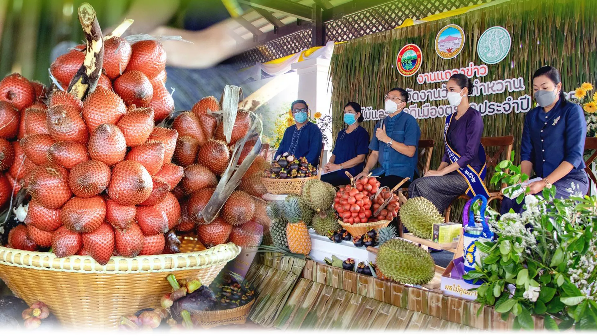 วันที่ 20 พ.ค. 65 นายชำนาญวิทย์ เตรัตน์ ผู้ว่าราชการจังหวัดตราด เป็นประธานในการแถลงข่าวการจัด“งานวันระกำหวาน ผลไม้และของดีเมืองตราด ประจำปี 2565” พร้อมด้วย นางสมฤดี เทพวงศ์ศิริรัตน์ ปลัด อบจ.ตราด นายยิ่งยศ พันธุ์เอี่ยม เกษตรและสหกรณ์จังหวัดตราด นางลัดดาวัลย์ โตสิงห์ หัวหน้ากลุ่มส่งเสริมและพัฒนาการผลิต สำนักงานเกษตรจังหวัดตราด และนางสาวโสภิดา บุศราคัม รองชนะเลิศอันดับที่ 2 ธิดาระกำหวาน ประจำปี 2562 ร่วมกันแถลงข่าวต่อสื่อมวลชนจังหวัดตราดและหัวหน้าส่วนราชการ ที่ศาลา 100 ปี ตราดรำลึก หน้าศาลากลางจังหวัดตราด