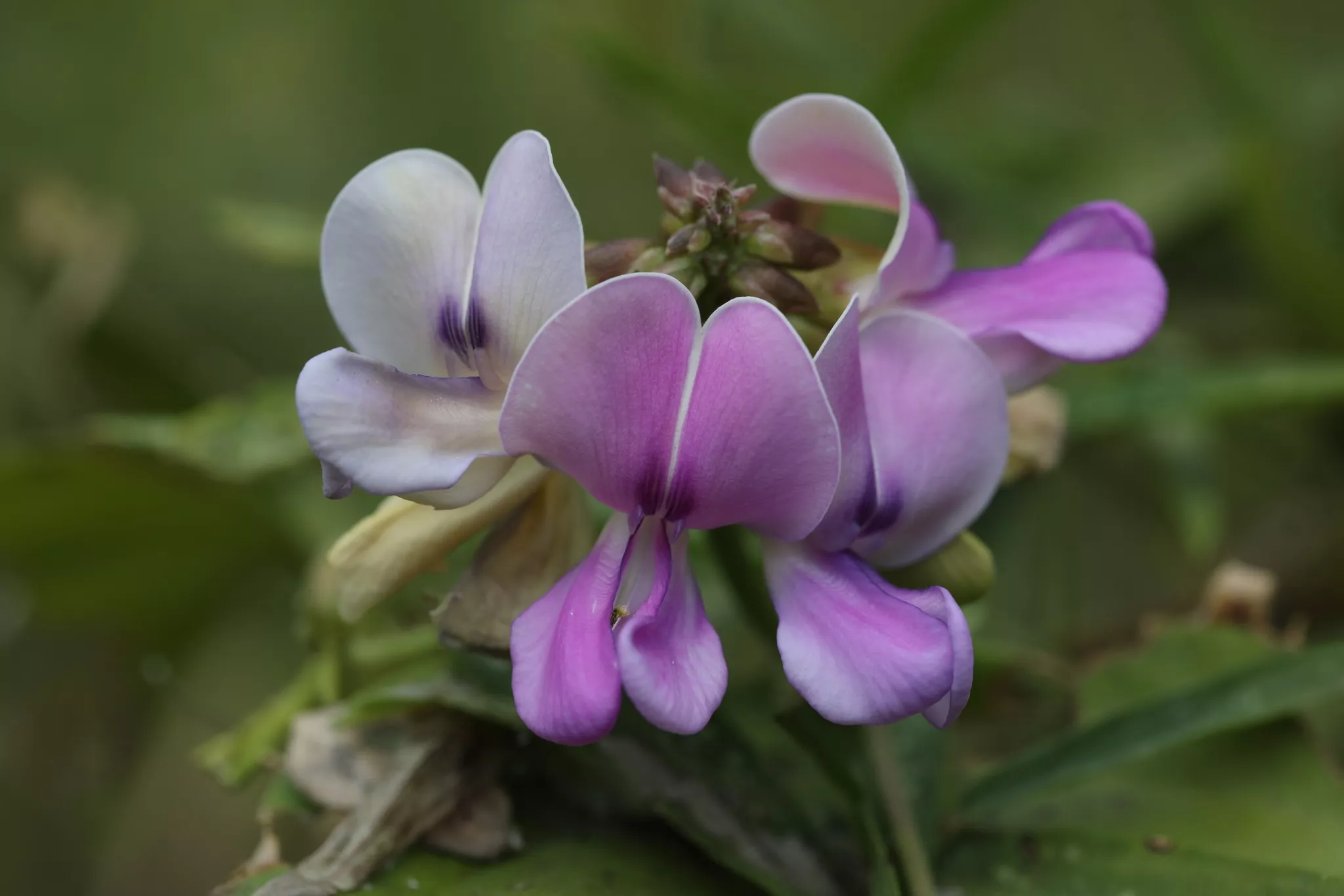 ช่อดอกคล้ายช่อกระจะหรือคล้ายช่อแยกแขนง ออกตามซอกใบ แต่ละช่อมีดอกออกเป็นกระจุก มี 6–20 กระจุก เรียงตามแกนกลางช่อดอก แต่ละกระจุกมี 2 ดอก ใบประดับย่อยติดที่ปลายก้านดอก มี 2 ใบ แนบกับหลอดกลีบเลี้ยง ติดทน รูปไข่หรือรูปไข่กว้าง พบน้อยที่เป็นรูปรี ยาว 2–3 มม. สั้นกว่าหลอดกลีบเลี้ยง ปลายแหลมหรือมน ดอกรูปดอกถั่ว สีชมพูอมม่วง เปลี่ยนเป็นสีเหลืองอ่อนเมื่อใกล้ร่วงหรือแห้ง กลีบเลี้ยงโคนเชื่อมติดกันเป็นรูปถ้วย ปลายแยกเป็น 5 แฉก แฉกบน 2 แฉก เชื่อมติดกัน ปลายแยกเป็นแฉกตื้น แฉกล่าง 3 แฉก รูปคล้ายสามเหลี่ยม ปลายแหลมหรือมน กลีบดอกมีก้านกลีบ กลีบกลาง (standard petal) รูปค่อนข้างกลม ปลายเว้าตื้น ใกล้กลางกลีบด้านในมีรยางค์ 2 รยางค์ กลีบคู่ข้าง (wing petal) รูปไข่กลับ ปลายมนกลม เป็นคลื่นเล็กน้อย ใกล้โคนกลีบมีรยางค์ 1 รยางค์ กลีบคู่ล่าง (keel petal) รูปคล้ายเคียว ขอบกลีบช่วงล่างเชื่อมติดกันตามแนวยาว ปลายมน เกสรเพศผู้ 10 เกสร ก้านชูอับเรณูสีขาว เชื่อมติดกันเป็น 2 กลุ่ม กลุ่มแรกมี 9 เกสร โคนเชื่อมติดกันโอบเกสรเพศเมีย ปลายแยกเป็นก้านชูอับเรณูสั้น เกสรเพศผู้ที่เหลืออีก 1 เกสร แยกเป็นอิสระ สั้นกว่าเกสรอื่นเล็กน้อย อับเรณูรูปทรงรี สีเหลือง รังไข่อยู่เหนือวงกลีบ รูปแถบ สีเขียว ก้านยอดเกสรเพศเมียแบนและหนา ยอดเกสรเพศเมียสีเขียว ปลายแยกเป็น 2 แฉก มีขนยาว