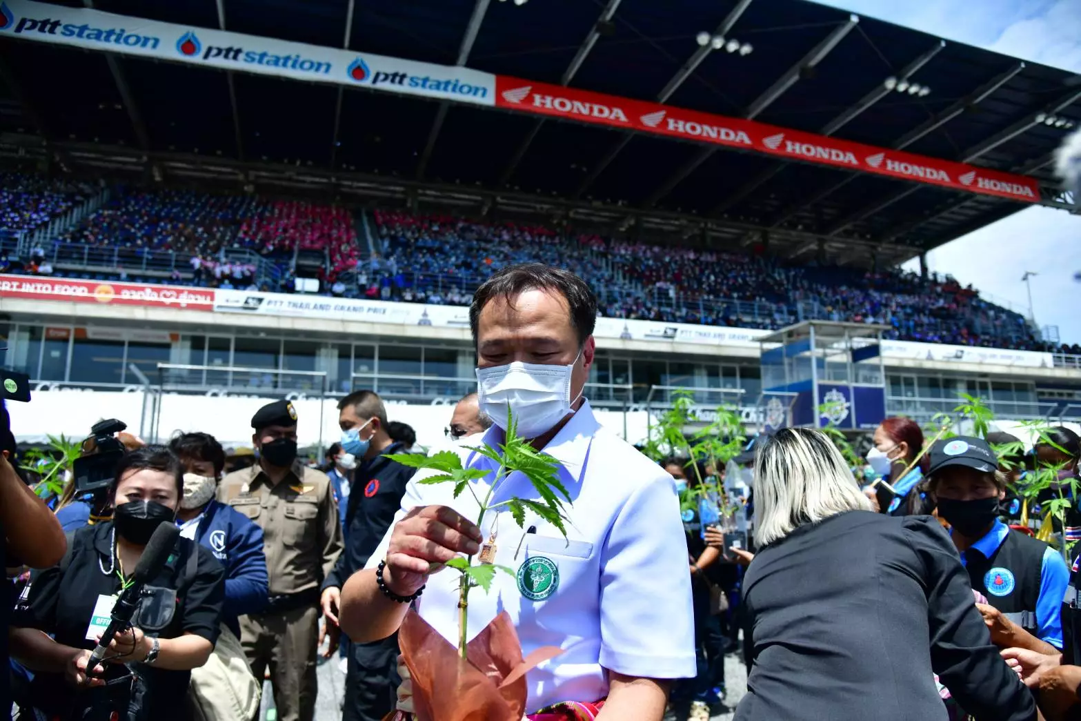 วันนี้ (10 มิถุนายน 2565) ที่สนามช้างอินเตอร์เนชันแนลเซอร์กิต อำเภอเมือง จังหวัดบุรีรัมย์ นายอนุทิน ชาญวีรกูล รองนายกรัฐมนตรีและรัฐมนตรีว่าการกระทรวงสาธารณสุข พร้อมด้วย นพ. เกียรติภูมิ วงศ์รจิต ปลัดกระทรวงสาธารณสุข และคณะผู้บริหาร เปิดการประชุมวิชาการกัญชาทางการแพทย์ เขตสุขภาพที่ 9 “มหกรรมกัญชา 360 องศา ปลดล็อกกัญชา ประชาชนได้อะไร”เพื่อเสริมสร้างความรู้ความเข้าใจด้านกัญชาทางการแพทย์ กัญชงเพื่อเศรษฐกิจ และเพิ่มการเข้าถึงการให้บริการกัญชาทางการแพทย์แก่ประชาชน ผู้ประกอบการ และบุคลากรทางการแพทย์ พร้อมส่งมอบ “ต้นกล้ากัญชา” 1,000 ต้น ให้แก่ประชาชน
