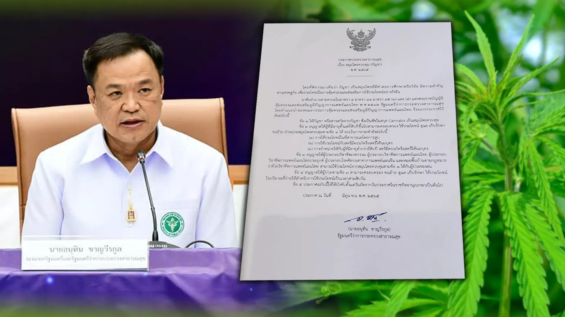 อนุทิน เซ็นประกาศ สธ. “กัญชา” เป็น”สมุนไพรควบคุม” ห้ามเสพที่สาธารณะ ห้ามจำหน่ายให้ผู้ที่มีอายุต่ำกว่า 20 ปี รวมถึงคนมีครรภ์