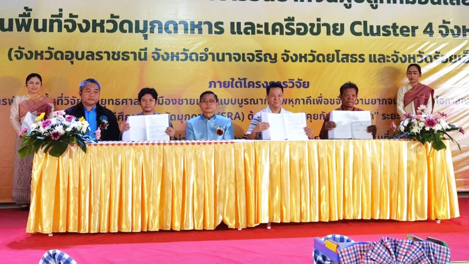 วันที่ 22 กุมภาพันธ์ 2567 นายวัชรพงษ์ แก้วหอม รองอธิบดีกรมหม่อนไหม เป็นประธานในพิธีลงนามบันทึกความเข้าใจว่าด้วยความร่วมมือเพื่อยกระดับรายได้ของครัวเรือนยากจนผู้ปลูกหม่อนเลี้ยงไหม สู่กระบวนการ Pro-Poor Value Chain เส้นทางสายไหมในพื้นที่จังหวัดมุกดาหาร ระหว่าง กรมหม่อนไหม วิทยาลัยชุมชนมุกดาหาร และบริษัทจุลไหมไทย จำกัด และพิธีลงนามการทำสัญญาซื้อขายรังไหมล่วงหน้า (Contract Farming) ระหว่าง เกษตรกรผู้ปลูกหม่อนเลี้ยงไหมอุตสาหกรรม และบริษัทจุลไหมไทย จำกัด ณ ห้องประชุมองค์การบริหารส่วนตำบลกกแดง อำเภอนิคมคำสร้อย จังหวัดมุกดาหาร