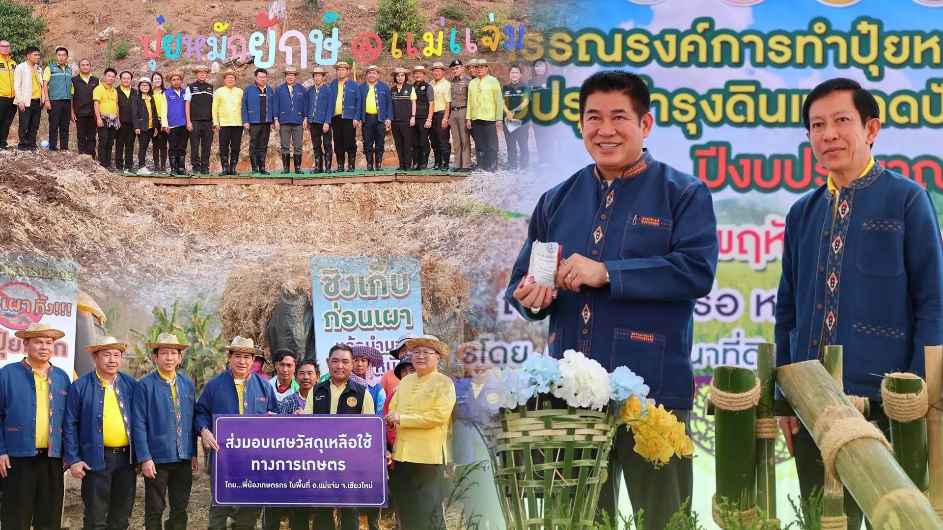 ร้อยเอก ธรรมนัส พรหมเผ่า รัฐมนตรีว่าการกระทรวงเกษตรและสหกรณ์ เป็นประธานพิธีเปิดงาน “โครงการรณรงค์การทำปุ๋ยหมักจากชังข้าวโพดและเศษพืช เพื่อปรับปรุงบำรุงดิน และลดปัญหาหมอกควัน และ PM 2.5 ” ประจำปีงบประมาณ พ.ศ. 2567 โดยมีนายเศรษฐเกียรติ กระจ่างวงษ์ รองปลัดกระทรวงเกษตรและสหกรณ์ นายปราโมทย์ ยาใจ อธิบดีกรมพัฒนาที่ดิน และผู้บริหารกระทรวงเกษตรและสหกรณ์ เข้าร่วม ณ บ้านต่อเรือ หมู่ที่ 2 ตำบลช่างเอิ่ง อำเภอแม่แจ่ม จังหวัดเชียงใหม่ ซึ่งกระทรวงเกษตรฯ โดยกรมพัฒนาที่ดิน จัดขึ้นโดยมีวัตถุประสงค์ คือ 1) เพื่อปลุกจิตสำนึก และเผยแพร่ประชาสัมพันธ์ให้เกษตรกรได้ทราบถึงประโยชน์จากการทำปุ๋ยหมัก จากเศษวัสดุเหลือใช้ทางการเกษตร 2) เพื่อสาธิตวิธีการทำปุ๋ยหมักที่ถูกต้องและเหมาะสมให้แก่เกษตรกร เป็นการเพิ่มความอุดมสมบูรณ์ให้แก่ดิน 3) เพื่อให้เกษตรกรปรับเปลี่ยนทัศนคติ งดการเผา และนำวัสดุที่เหลือใช้จากไร่นามาเป็นวัสดุปรับปรุงบำรุงดิน เพื่อเพิ่มผลผลิตและลดต้นทุนการผลิต และ 4) เพื่อรักษาสิ่งแวดล้อม ลดหมอกควัน บรรเทาภาวะโลกร้อน และลดการปล่อยก๊าซเรือนกระจกที่เกิดจากการเผาเศษวัสดุเหลือใช้ทางการเกษตร