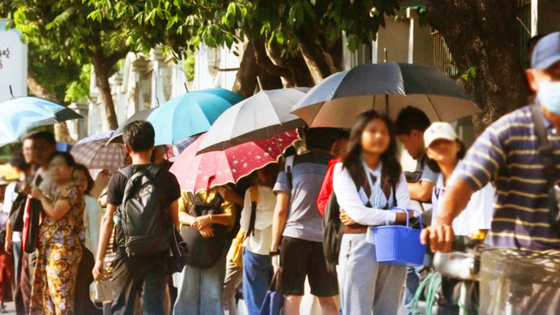 แฟ้มภาพซินหัว : ผู้คนกางร่มบังแดดในวันอากาศร้อนจัดในนครย่างกุ้งของเมียนมา วันที่ 5 เม.ย. 2024
