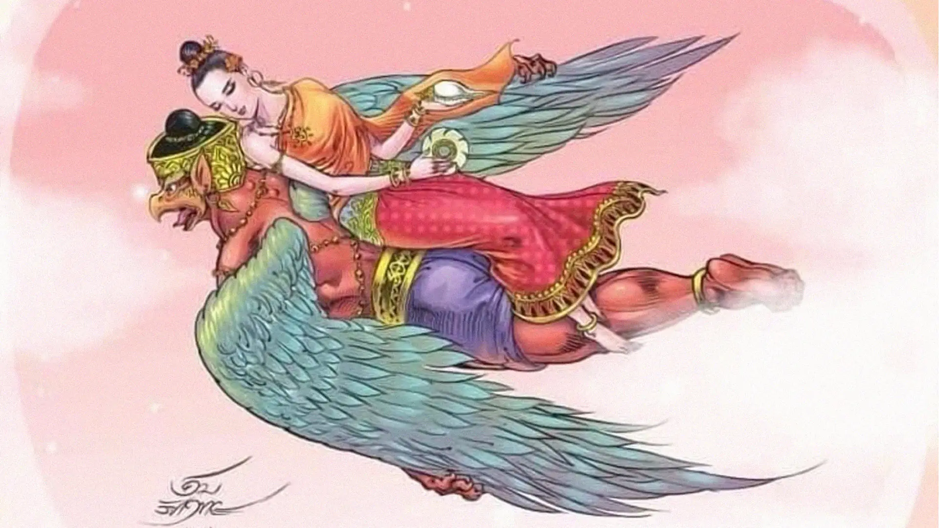 ✨นางสงกรานต์ ทรงนามว่า ทุงสะเทวี ทรงพาหุรัด ทัดดอกทับทิม อาภรณ์แก้วปัทมราค ภักษาหารอุทุมพร (มะเดื่อ) พระหัตถ์ขวาทรงจักร พระหัตถ์ซ้ายทรงสังข์ เสด็จไสยาสน์หลับเนตรมาเหนือหลังครุฑเป็นพาหนะ