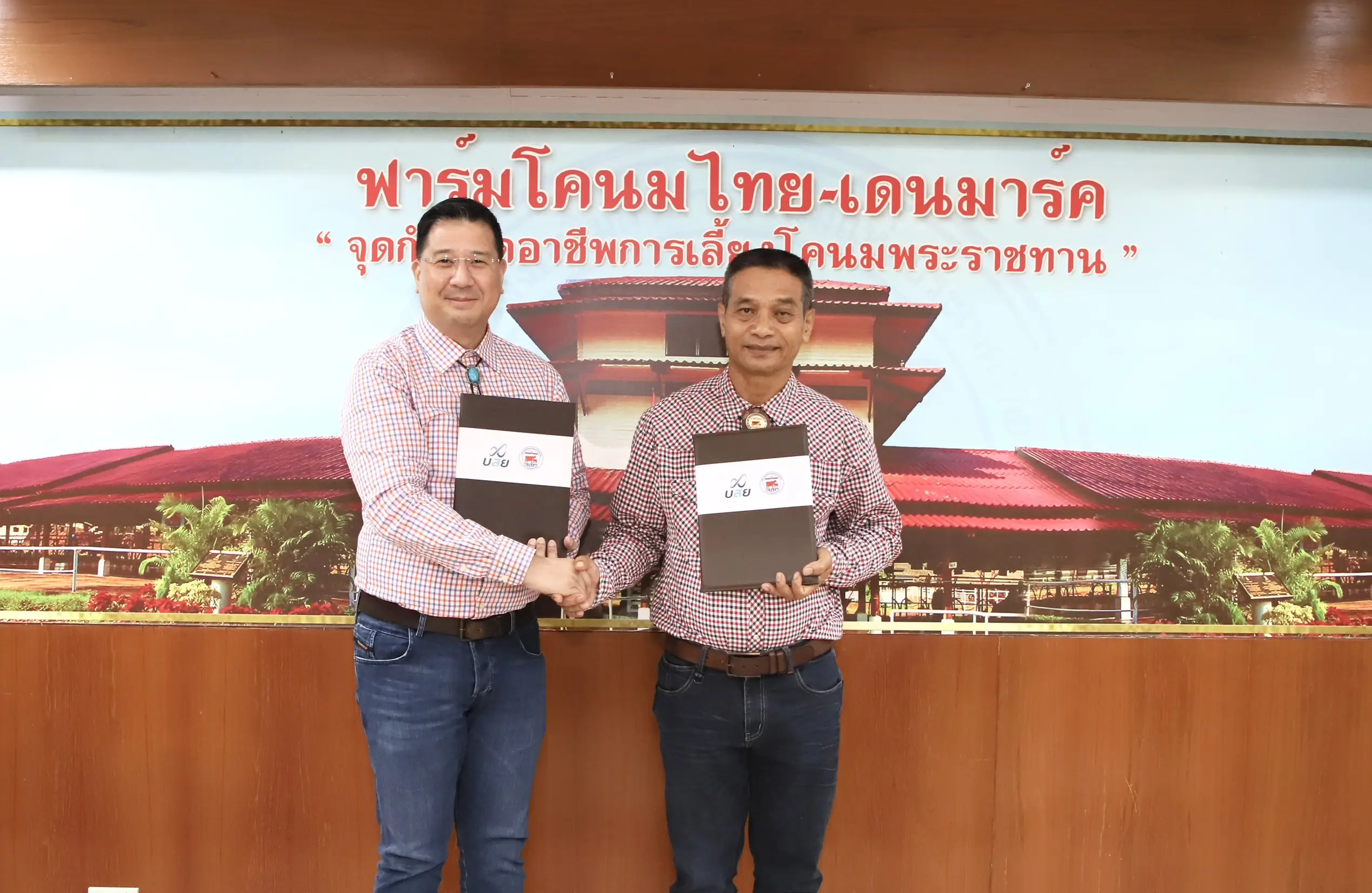 เมื่อวันที่ 11 มีนาคม 2568 ณ องค์การส่งเสริมกิจการโคนมแห่งประเทศไทย (อ.ส.ค.) อำเภอมวกเหล็ก จังหวัดสระบุรี ตอกย้ำบทบาทของ อ.ส.ค. โดยมีนายสมพร ศรีเมือง ผู้อำนวยการองค์การส่งเสริมกิจการโคนมแห่งประเทศไทย (อ.ส.ค.) พร้อมด้วย นายสิทธิกร ดิเรกสุนทร กรรมการ และผู้จัดการทั่วไป บรรษัทประกันสินเชื่ออุตสาหกรรมขนาดย่อม (บสย.) ในฐานะองค์กรหลักที่ขับเคลื่อนอุตสาหกรรมโคนมของไทยให้เติบโตอย่างมั่นคง และยั่งยืน ร่วมลงนามบันทึกข้อตกลงความร่วมมือ (MOU) เพื่อส่งเสริม และสนับสนุนผู้ประกอบการ SMEs และเกษตรกรกลุ่มผู้เลี้ยงโคนม โดย องค์การส่งเสริมกิจการโคนมแห่งประเทศไทย (อ.ส.ค.) มุ่งเน้นการพัฒนาศักยภาพด้านการดำเนินธุรกิจของกลุ่มผู้ประกอบการรายใหม่/New Gen ที่ต้องการเป็นเจ้าของธุรกิจค้าปลีกภายใต้เครือข่าย THAI – DENMARK MILK LAND ตลอดจนส่งเสริมกิจกรรมที่เป็นประโยชน์ต่อชุมชน และสังคม ในข้อตกลงความร่วมมือนี้ถือเป็นก้าวสำคัญของ อ.ส.ค. ในการผลักดันอุตสาหกรรมโคนมไทยให้เติบโตอย่างยั่งยืน ผ่านการสนับสนุนทางการเงิน และการบริหารจัดการธุรกิจ โดยตั้งเป้าช่วยเหลือเกษตรกร และผู้ประกอบการ SMEs ให้เข้าถึงสินเชื่อในระบบไม่น้อยกว่า 2,000 ราย นายสมพร ศรีเมือง ผู้อำนวยการองค์การส่งเสริมกิจการโคนมแห่งประเทศไทย (อ.ส.ค.) กล่าวว่า