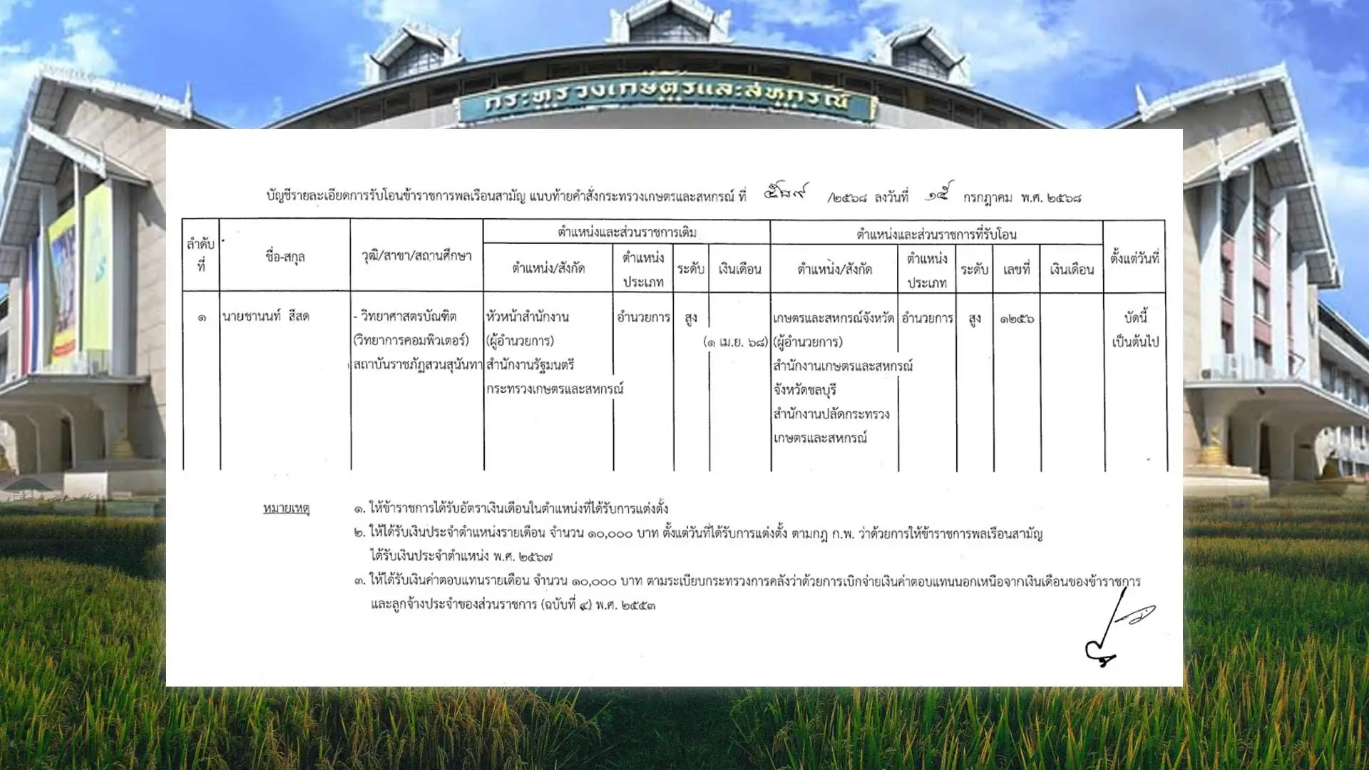 เช็ก..แต่งตั้งโยกย้ายข้าราชการกระทรวงเกษตรฯ 3 ตำแหน่ง