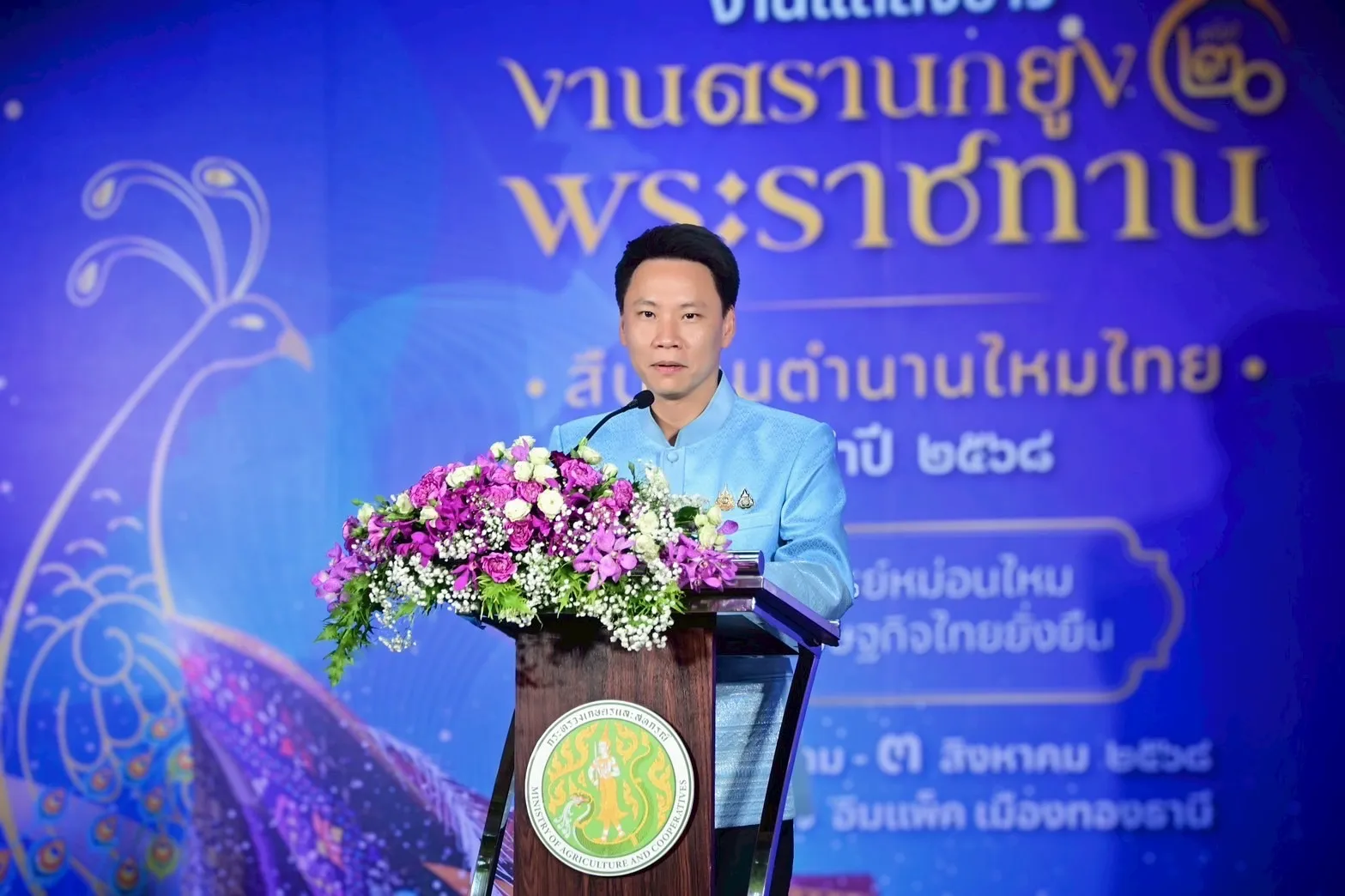 นายอรรถกร ศิริลัทธยากร รัฐมนตรีว่าการกระทรวงเกษตรและสหกรณ์ เป็นประธานแถลงข่าว “งานตรานกยูงพระราชทาน สืบสานตำนานไหมไทย” ครั้งที่ 20 ประจำปี 2568 ภายใต้แนวคิด “มหัศจรรย์หม่อนไหม สร้างเศรษฐกิจไทยยั่งยืน” จัดโดย กรมหม่อนไหม ณ ห้อง 115 กระทรวงเกษตรและสหกรณ์ เพื่อน้อมรำลึกในพระมหากรุณาธิคุณของสมเด็จพระนางเจ้าสิริกิติ์ พระบรมราชินีนาถ พระบรมราชชนนีพันปีหลวง เนื่องในโอกาสมหามงคลเฉลิมพระชนมพรรษา 12 สิงหาคม 2568 ที่ทรงสืบสานและทรงให้ความสำคัญกับผ้าไหมไทย พร้อมผลักดันมาตรฐานไหมไทย มุ่งสร้างชื่อเสียง สร้างรายได้ให้แก่เกษตรกร ขับเคลื่อนเศรษฐกิจของประเทศ