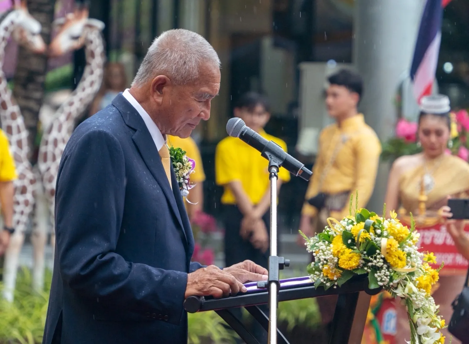 พิธีเริ่มต้นด้วยขบวนเฉลิมพระเกียรติ ชื่อชุด“เฉลิมฉัตรสุรเสียง สรรเสริญพระวชิรเกล้าเจ้าอยู่หัว”อันยิ่งใหญ่อลังการ นับเป็นการรวมพนักงานและช้างร่วมพิธีถวายพระพรจำนวนมากที่สุด โดยมีนายกัมพล ตันสัจจา เป็นประธานในพิธี วางพุ่มทอง-พุ่มเงิน เปิดกรวยกระทงดอกไม้ถวายราชสักการะ พร้อมนำกล่าวถวายราชสดุดีเฉลิมพระเกียรติ และกล่าวคำถวายพระพรชัยมงคล “ทรงพระเจริญ” ร่วมกันทั้งพิธี