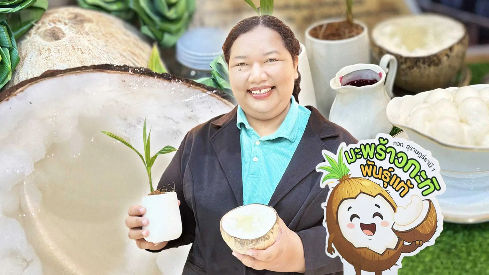 “มะพร้าวกะทิพันธุ์แท้” พันธุ์ กวก. สุราษฎร์ธานี 1 เกิดจากการพัฒนาพันธุ์อย่างยาวนานถึง 27 ปี เริ่มตั้งแต่การผสมพันธุ์เพื่อสร้างลูกผสมมะพร้าวกะทิ พัฒนาวิธีการขยายพันธุ์ด้วยการเพาะเลี้ยงต้นอ่อน (embryo) การคัดเลือกมะพร้าวกะทิพันธุ์แท้ โดยการตรวจสอบยืนบอกความเป็นมะพร้าวกะทิพันธุ์แท้ และปลูกประเมินมะพร้าวกะทิพันธุ์แท้ที่ผ่านการคัดเลือก ลักษณะเด่น ให้ผลผลิตเร็ว ผลผลิตทุกผลเป็นมะพร้าวกะทิสูงมากถึง 105 ผล/ต้น/ปี (อายุ 9 ปี)