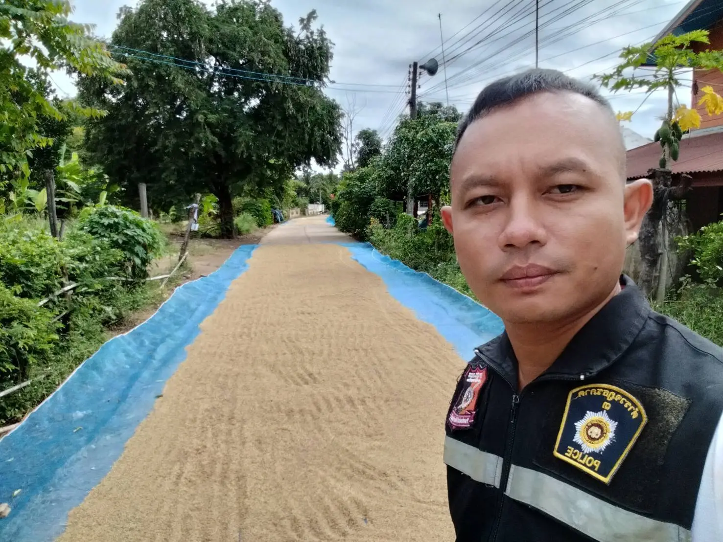 สายตรวจตำบลเขต 1 ได้รับแจ้ง กรณีตากข้าวบนถนน ทำให้รถไม่สามารถสัญจรได้ จึงลงพื้นที่ และได้ดำเนินการตรวจสอบ