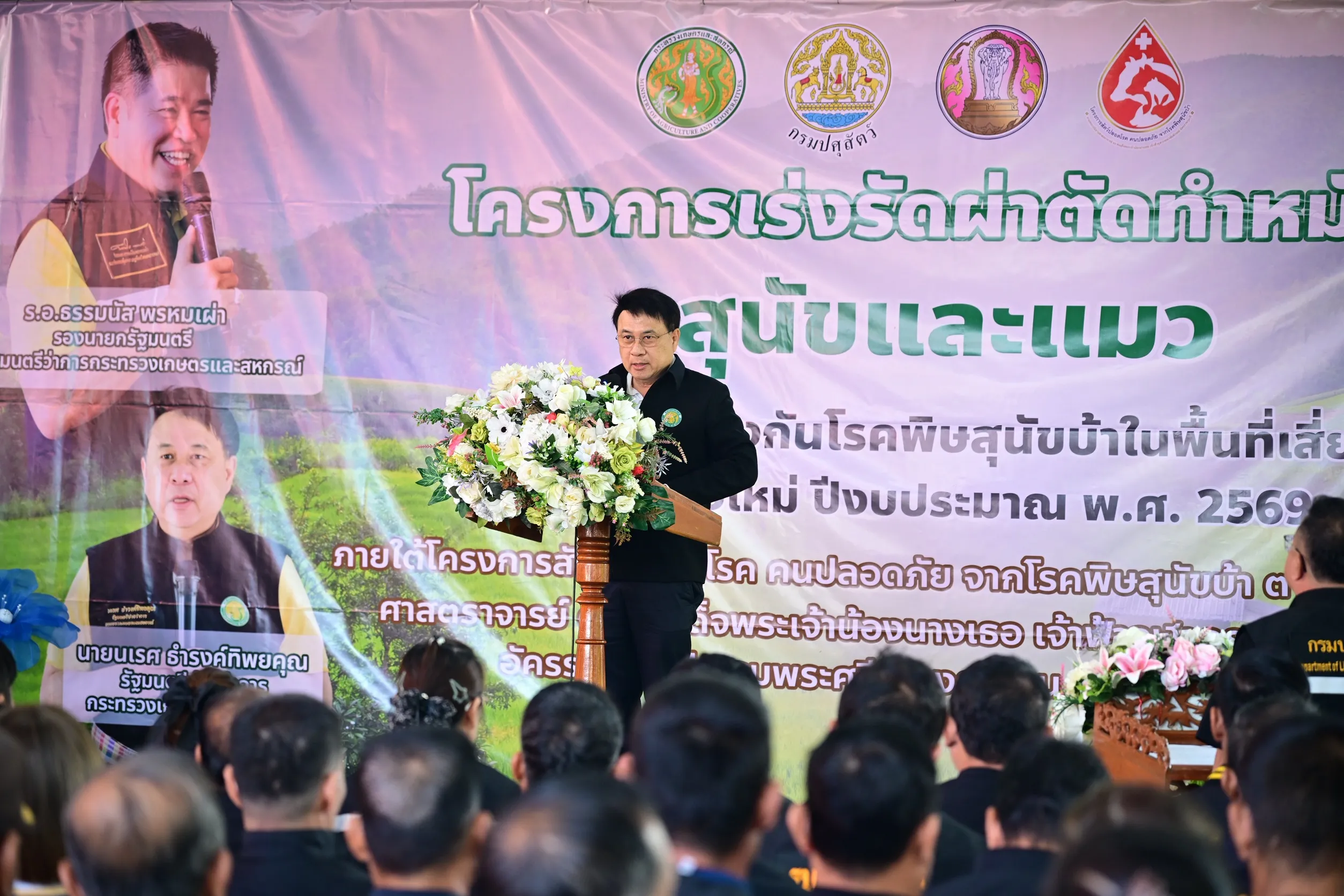 นายนเรศ ธำรงค์ทิพยคุณ รัฐมนตรีช่วยว่าการกระทรวงเกษตรและสหกรณ์ เป็นประธานในพิธีเปิดโครงการกิจกรรม ผ่าตัดสุนัข – แมว และฉีดวัคซีนเพื่อป้องกันโรคพิษสุนัขบ้า ปีงบประมาณ พ.ศ. 2569 ซึ่งกระทรวงเกษตรและสหกรณ์ โดยกรมปศุสัตว์ เล็งเห็นความสำคัญในเรื่องการควบคุมและป้องกันโรคพิษสุนัขบ้าในพื้นที่เสี่ยง โดยมีผู้บริหาร ในสังกัดกระทรวงเกษตรและสหกรณ์ และเจ้าหน้าที่ที่เกี่ยวข้อง ณ เทศบาลตำบลแม่วาง อำเภอแม่วาง จังหวัดเชียงใหม่