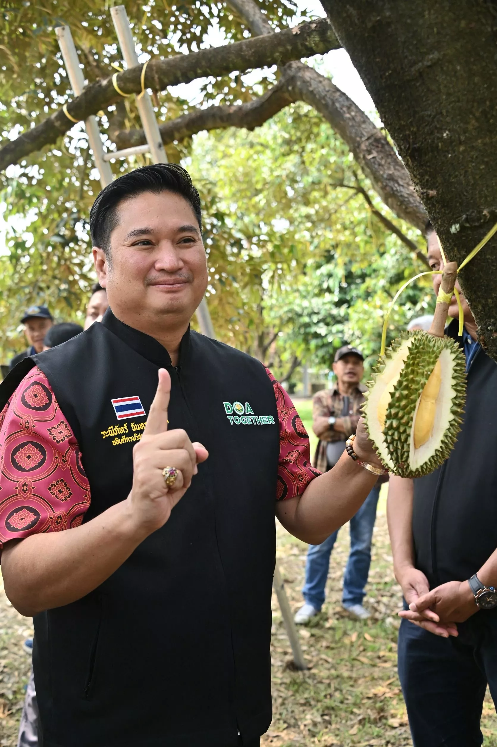 วันที่ 12 มีนาคม 2566 นายระพีภัทร์ จันทรศรีวงศ์ อธิบดีกรมวิชาการเกษตร พร้อมด้วย นายพิทวัฒน์อ่อนทองหลาง ผู้อำนวยการสำนักวิจัยและพัฒนาการเกษตรเขตที่ 6 นางสาวฉันทนา คงนคร ผู้อำนวยการสำนักวิจัยและพัฒนาการเกษตรเขตที่ 7 ลงพื้นที่สวนทุเรียนของนายบุญจง บุญวาที หมู่ที่ 4 ตำบลหลวงน้ำขาว อำเภอเมือง จังหวัดตราด ร่วมกิจกรรมตรวจก่อนตัดทุเรียน เนื่องจากเป็นช่วงต้นฤดูเก็บเกี่ยวผลผลิตทุเรียน จึงมีทุเรียนพันธุ์เบาและทุเรียนที่บังคับสารออกดอกสามารถเก็บเกี่ยวได้ ได้แก่ พันธุ์กระดุมพันธุ์พวงมณี และหมอนทองบางส่วน