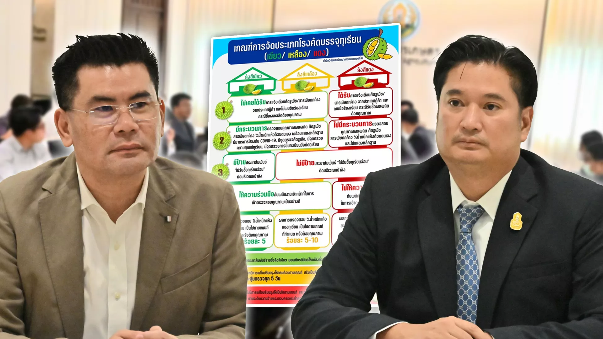 อธิบดีกรมวิชาการเกษตร เชิญ อธิบดีกรมการค้าภายในสมาคมผู้ค้าและส่งออกผลไม้ไทย ยกร่างเกณฑ์ในการจัดแบ่งเกรดโรงคัดบรรจุ เขียว เหลือง แดง ย้ำเตือนข้อกำหนด ตาม ระเบียบ และประกาศกรมวิชาการเกษตร รวมถึง บทลงโทษต่างๆ