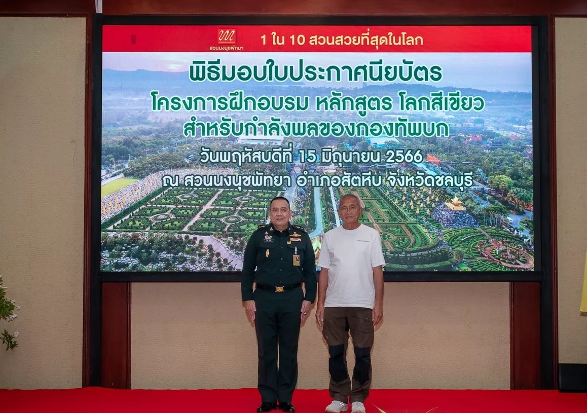 กองทัพบกร่วมกับ สวนนงนุชพัทยา ฝึกอบรมกำลังพลของกองทัพบก โครงการฝึกอบรมหลักสูตรโลกสีเขียว