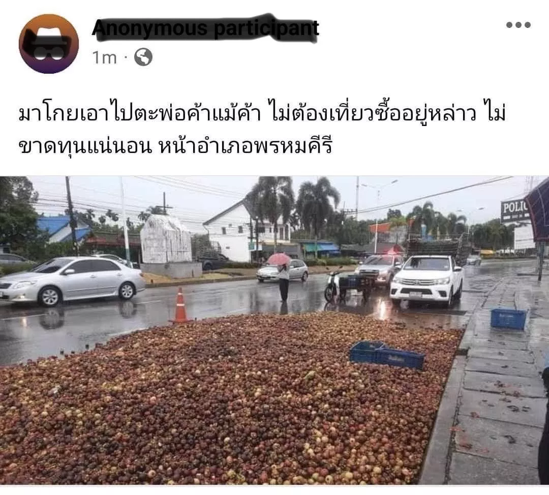 เมื่อเวลาประมาณ 17.00 น. มีรายงานว่า ชาวสวนมังคุดในจังหวัดนครศรีธรรมราช รายหนึ่ง นำผลมังคุดราว 500 กิโลกรัม ไปเททิ้งบนถนนหน้าที่ว่าการอำเภอพรหมคีรี จ.นครศรีธรรมราช ทำให้เจ้าหน้าที่ต้องมาจัดการจราจรใหม่ เนื่องจากผิวการจราจรไม่สามารถใช้สัญจรได้ 1 ช่องทาง