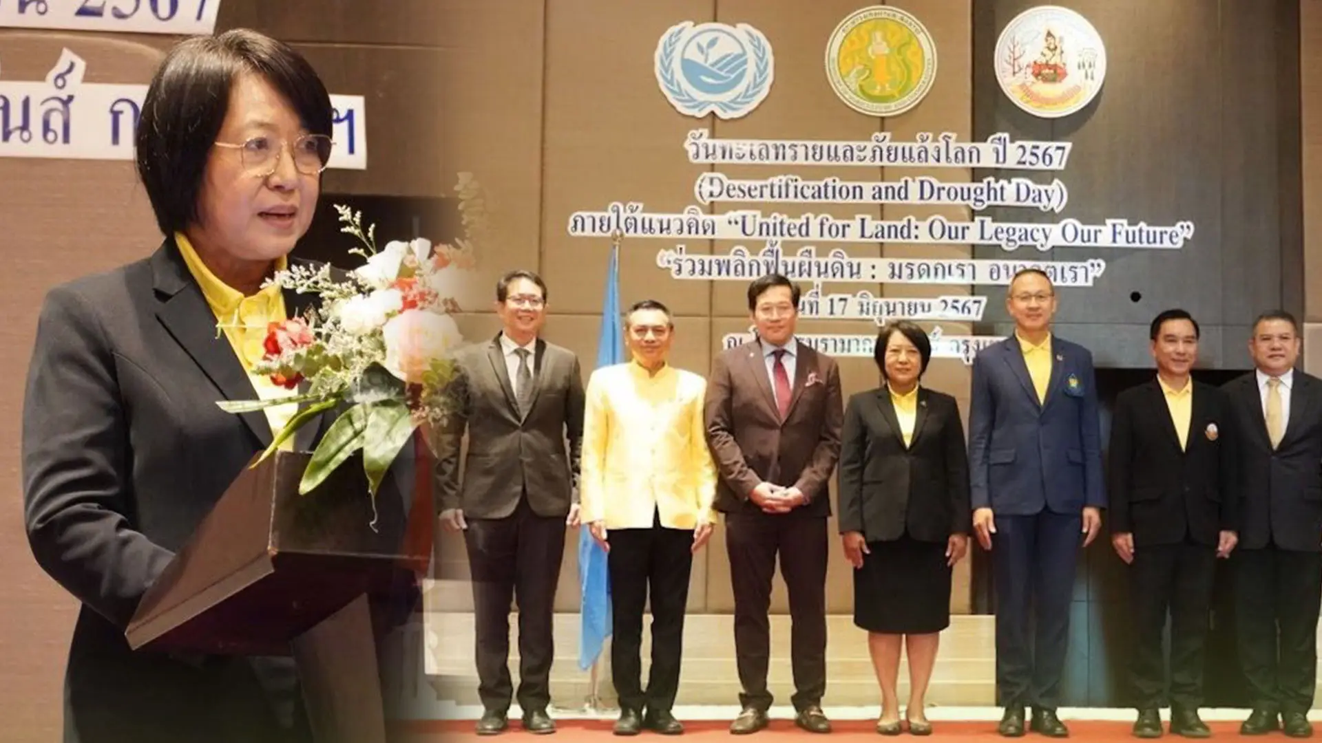 นางสาวภัทราภรณ์ โสเจยยะ รองปลัดกระทรวงเกษตรและสหกรณ์ กล่าวว่า ที่ประชุมสมัชชาใหญ่ แห่งสหประชาชาติ (General Assembly) กำหนดให้วันที่ 17 มิถุนายน ของทุกปี เป็นวันทะเลทรายและภัยแล้งโลก (Desertification & Drought Day) โดยในปี 2567 นี้ จะเป็นวาระครบรอบ 30 ปี ของอนุสัญญาสหประชาชาติ ว่าด้วยการต่อต้านการแปรสภาพเป็นทะเลทราย (UNCCD) โดยกระทรวงเกษตรและสหกรณ์ ได้มีการขับเคลื่อนการดำเนินงานอนุสัญญา UNCCD ร่วมกับหน่วยงานที่เกี่ยวข้องกับความเสื่อมโทรมของที่ดินในด้านต่าง ๆ ทั้งด้านการสร้างความตระหนัก ด้านนโยบาย ด้านวิทยาศาสตร์และเทคโนโลยี ด้านการพัฒนาศักยภาพ และด้านการถ่ายทอดเทคโนโลยี ซึ่งเป็นโอกาสที่จะพัฒนาการทำงานในเชิงบูรณาการให้ครอบคลุมกิจกรรมที่เกี่ยวข้องกับความเสื่อมโทรมที่กล่าวถึง ในทุก ๆ ด้านและสนับสนุนนโยบายการเกษตรที่ใส่ใจสิ่งแวดล้อม (Go Green) และBCG Model ที่เป็นนโยบายของรัฐบาลด้วย และได้มอบหมายให้ กรมพัฒนาที่ดิน เป็นผู้รับผิดชอบหลักในฐานะหน่วยงานผู้ประสานงานระดับชาติ (National Focal Agency) ของอนุสัญญา UNCCD และจัดงานเนื่องในวันทะเลทรายและภัยแล้งโลกปี 2567 ขึ้น