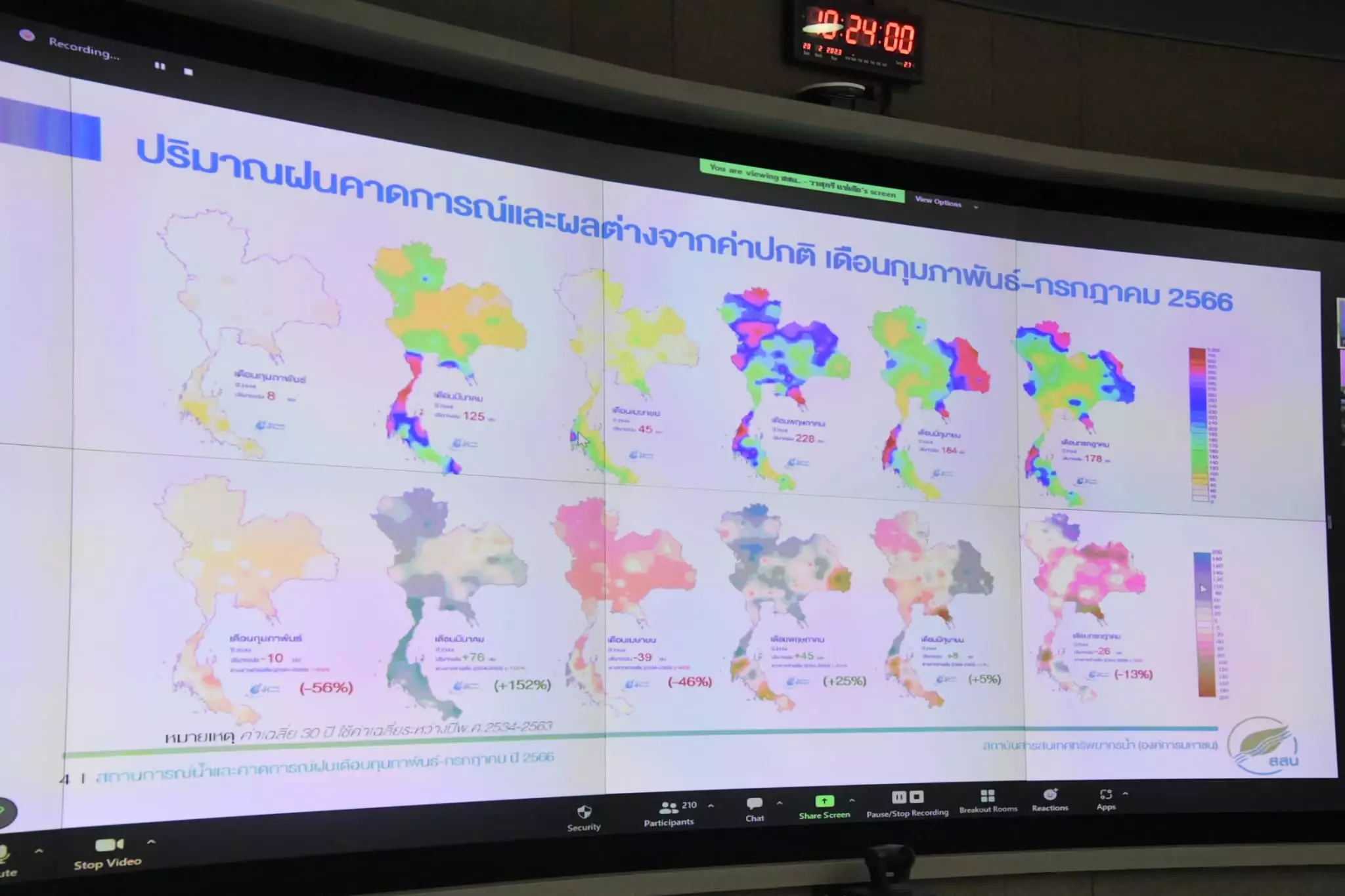 วันที่ 20 ก.พ. 66 ที่ศูนย์ปฏิบัติการน้ำอัจฉริยะ (SWOC) กรมชลประทาน ถนนสามเสน ดร.ธเนศ สมบูรณ์ ผู้อำนวยการสำนักบริหารจัดการน้ำและอุทกวิทยา เป็นประธานการประชุมคณะอนุกรรมการติดตามและวิเคราะห์แนวโน้มสถานการณ์น้ำผ่านระบบ Video Conference ไปยังสำนักงานชลประทานที่ 1-17 และหน่วยงานที่เกี่ยวข้อง อาทิ กรมอุตุฯ สถาบันสารสนเทศทรัพยากรน้ำ กรมทรัพยากรน้ำ กรมป้องกันและบรรเทาสาธารณภัย สำนักการระบายน้ำ กรุงเทพมหานคร การไฟฟ้าฝ่ายผลิตแห่งประเทศไทย (กฟผ.) เพื่อติดตามและวิเคราะห์สถานการณ์น้ำในอ่างเก็บน้ำ แหล่งน้ำ และแม่น้ำสายหลักต่าง ๆ สำหรับเป็นข้อมูลในการบริหารจัดการน้ำให้สอดคล้องและเหมาะสมในแต่ละพื้นที่ต่อไป