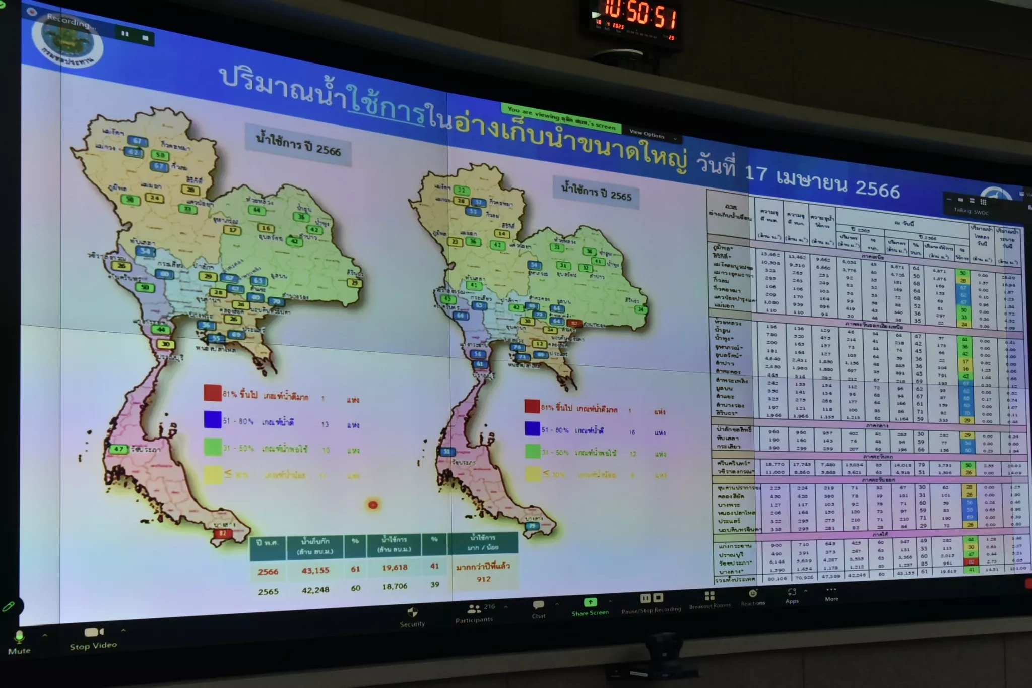 วันที่ 18 เม.ย. 66 ที่ศูนย์ปฏิบัติการน้ำอัจฉริยะ (SWOC) กรมชลประทาน ถนนสามเสน ดร.ทวีศักดิ์ ธนเดโชพล รองอธิบดีกรมชลประทาน เป็นประธานการประชุมคณะอนุกรรมการติดตามและวิเคราะห์แนวโน้มสถานการณ์น้ำ ผ่านระบบ Video Conference ไปยังสำนักงานชลประทานที่ 1-17 และหน่วยงานที่เกี่ยวข้อง อาทิ กรมอุตุนิยมวิทยา สถาบันสารสนเทศทรัพยากรน้ำ กรมทรัพยากรน้ำ กรมป้องกันและบรรเทาสาธารณภัย สำนักการระบายน้ำกรุงเทพมหานคร การไฟฟ้าฝ่ายผลิตแห่งประเทศไทย (กฟผ.) เพื่อติดตามและวิเคราะห์สถานการณ์น้ำในอ่างเก็บน้ำ แหล่งน้ำ และแม่น้ำสายหลักต่าง ๆ สำหรับเป็นข้อมูลในการบริหารจัดการน้ำให้สอดคล้องและเหมาะสมในแต่ละพื้นที่ต่อไป