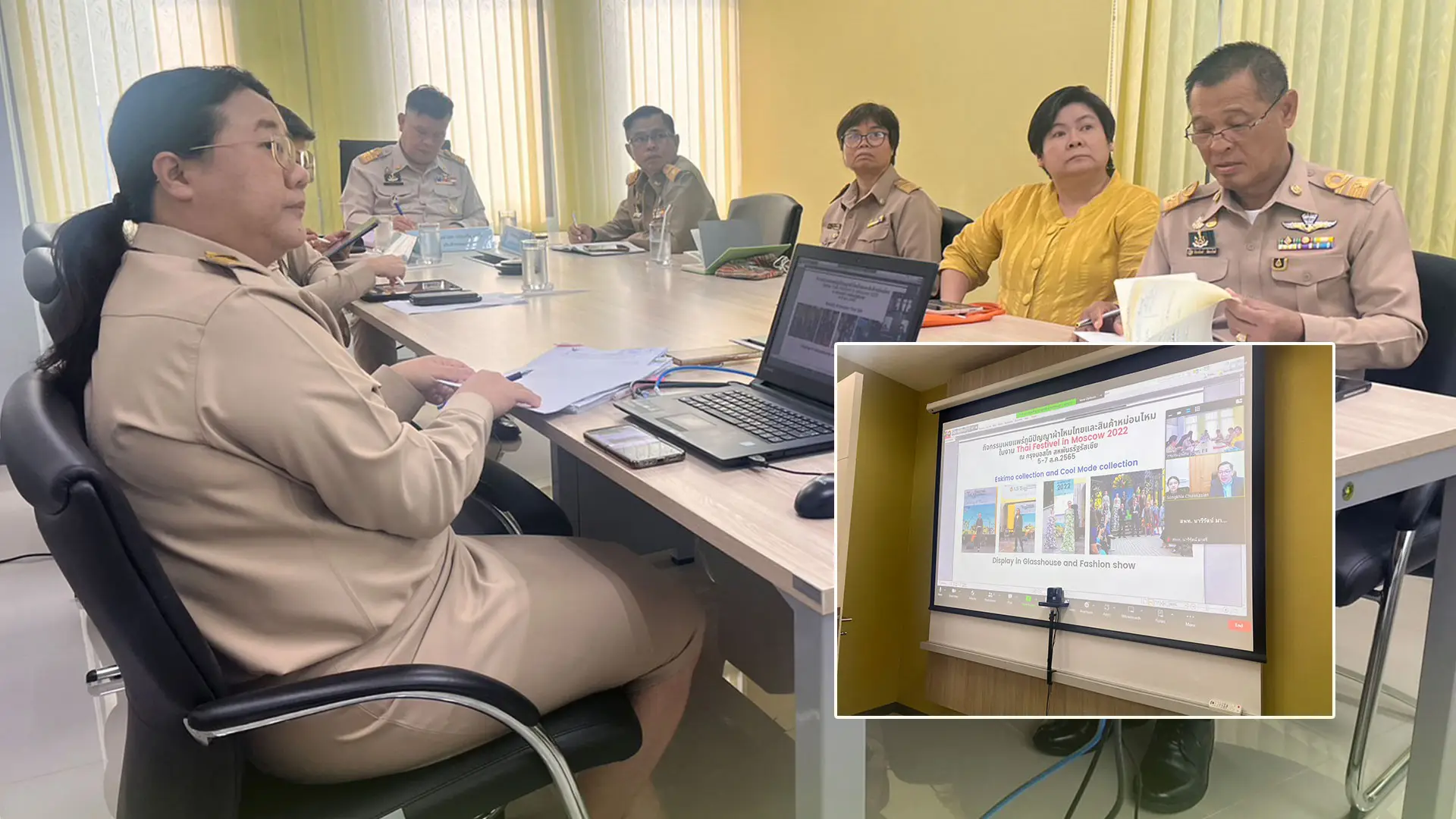 กรมหม่อนไหมโชว์ความงามผ้าไหมไทยมาตรฐานตรานกยูงพระราชทาน ต้อนรับภริยานายกรัฐมนตรีราชอาณาจักรกัมพูชา ในการเดินทางเยือนประเทศไทยอย่างเป็นทางการฐานะแขกของรัฐบาล