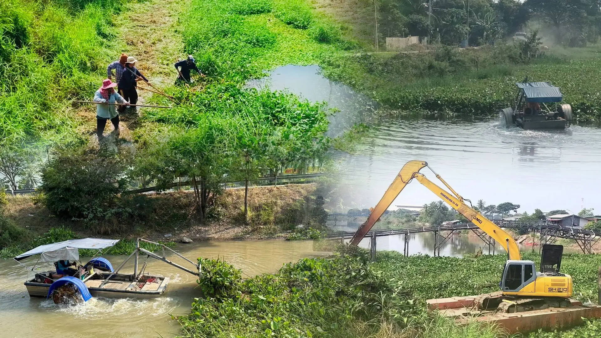 กรมชลฯลุยเก็บผักตบชวา แบบจัดใหญ่จัดเต็ม หวังเพิ่มประสิทธิภาพการส่งน้ำให้ประชาชน