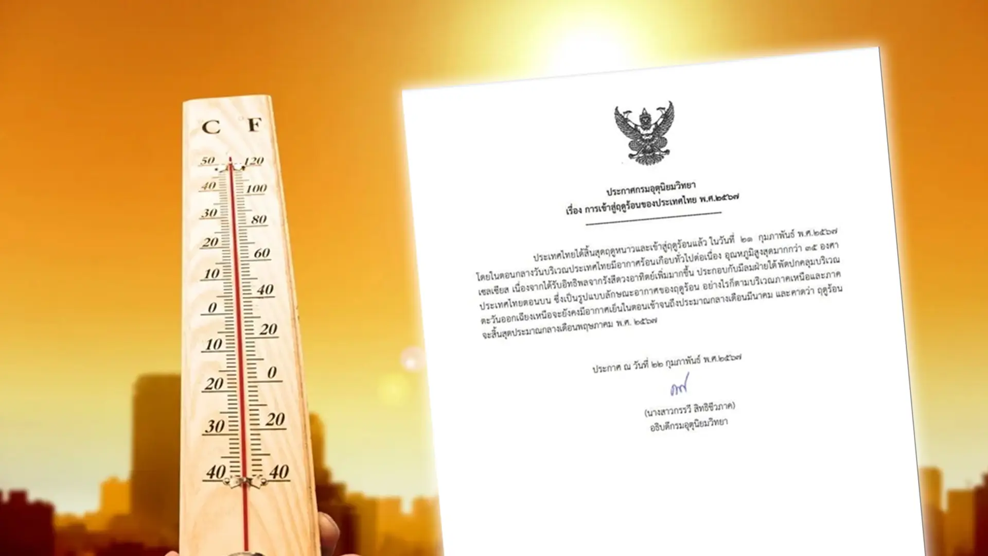 กรมอุตุนิยมวิทยา ประกาศ ประเทศไทยสิ้นสุดฤดูหนาวและเข้าสู่ฤดูร้อนแล้ว ในวันที่ 21 ก.พ. สำหรับปีนี้จะร้อนกว่าปีที่แล้ว 1-2 องศา และสิ้นสุดฤดูร้อนกลาง พ.ค.