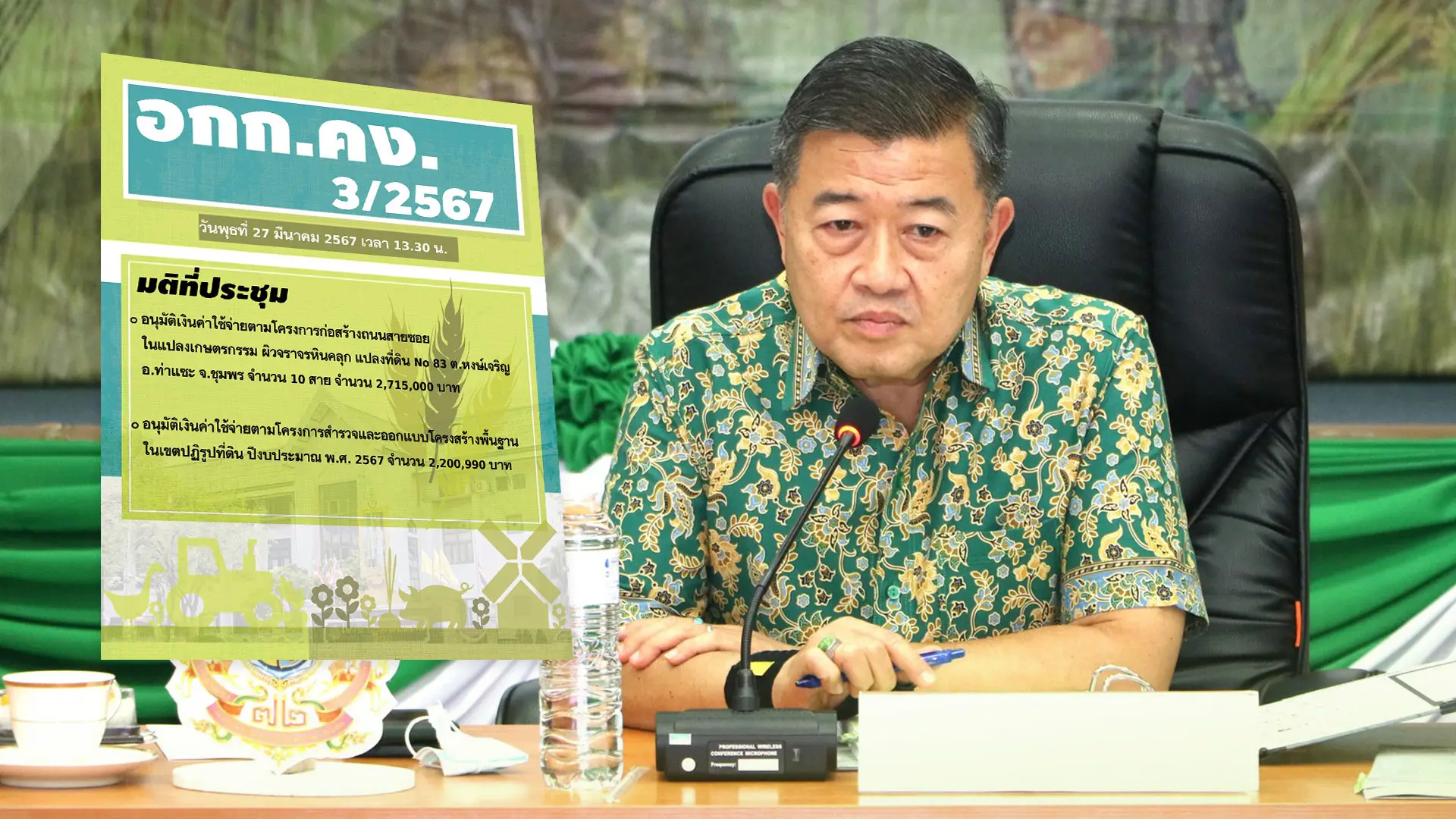 อกก.คง. อนุมัติเงินค่าใช้จ่ายตามโครงการก่อสร้างถนนสายซอยในแปลงเกษตรกรรม -สำรวจและออกแบบโครงสร้างพื้นฐานในเขตปฏิรูปที่ดิน ปีงบประมาณ พ.ศ. 2567